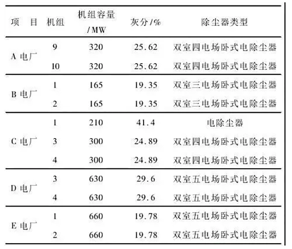 表1燃煤電廠除塵器改造前設(shè)備信息
