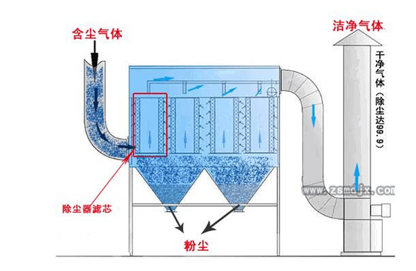 使含塵氣流通過過濾材料將粉塵分離捕集的裝置。
