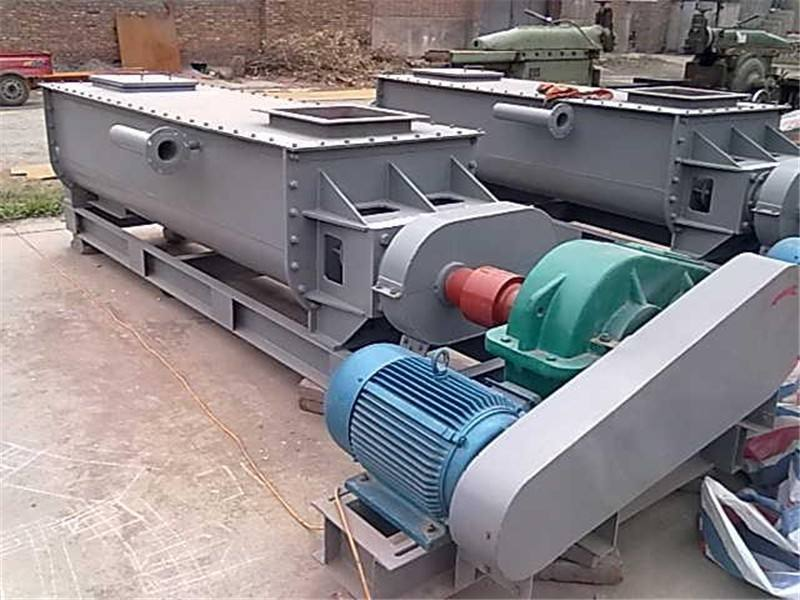 同時,還可在出料口料槽端部安裝一小段反旋向葉片,以防端部堵料。對進(jìn)入粉塵加濕攪拌機(jī)的物料進(jìn)行必要的清理,以防止大雜或纖維性雜質(zhì)進(jìn)入機(jī)內(nèi)引起堵塞。