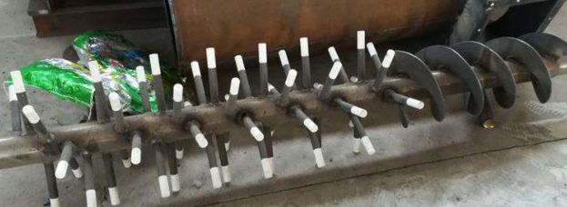 3.加大出料口或加長料槽端部,以解決排料不暢或來不及排料的問題。同時,還可在出料口料槽端部安裝一小段反旋向葉片,以防端部堵料。