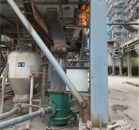 料封泵一般安裝在料倉底部,新投產(chǎn)的料封泵應(yīng)先把活動風(fēng)管外腔加入足量的潤滑油,再通過執(zhí)行機構(gòu)對活動風(fēng)管進行調(diào)整,來改變噴嘴與噴頭之間的距離,通過調(diào)試來選擇一個比較理想的位置同時記下標尺刻度,開始正常工作。停機時先使噴嘴與噴頭閉合并使管道內(nèi)物料全部輸送完才能停風(fēng)。料封泵只有在料面具有一定高度時才能正常工作,如果料位低于一定值時輸送量就會減少,如果突然停氣等原因使管道堵塞時,應(yīng)使噴嘴與噴頭閉合吹起直至管道暢通。